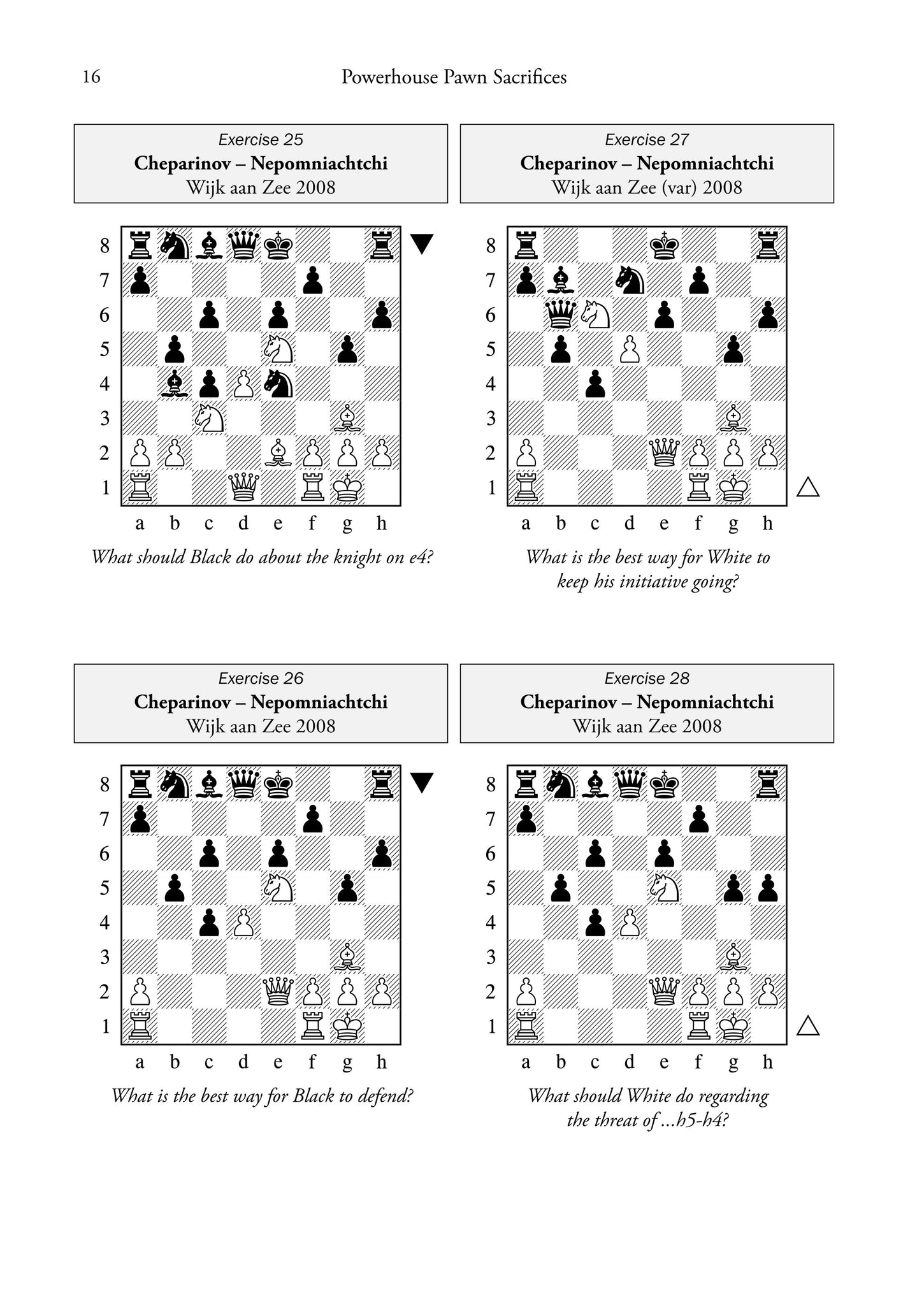 Powerhouse Pawn Sacrifices enthält alles, was Sie brauchen, um diesen entscheidenden Bereich des Schachspiels zu meistern. Neben dynamischen und langfristigen Opfern behandelt Großmeister Ivan Cheparinov auch Bauernopfer, die in bestimmten Eröffnungsvarianten auftreten, verbindet die verschiedenen Phasen des Spiels miteinander und gibt wertvolle Einblicke, die sich auf andere Szenarien übertragen lassen.